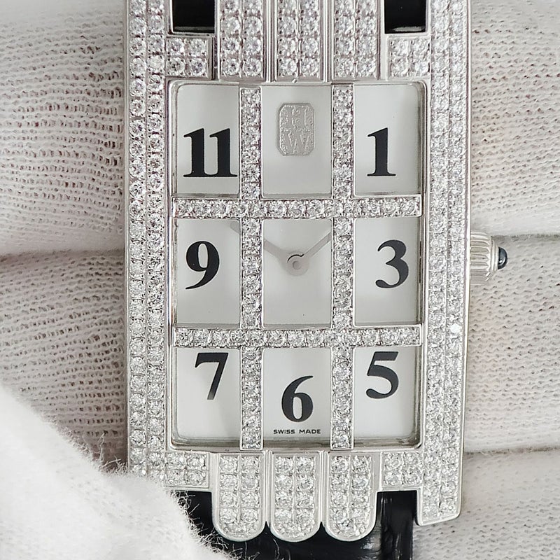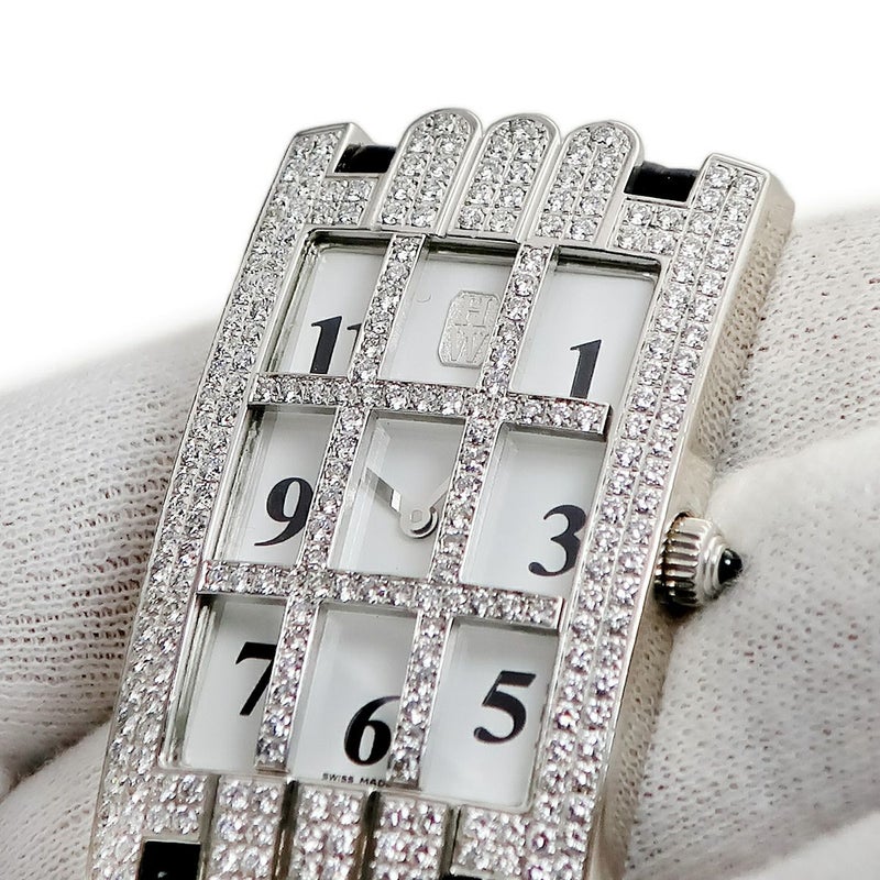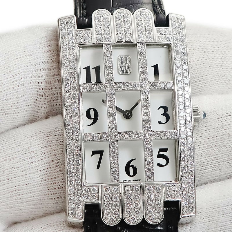 ハリーウィンストン Harry Winston アヴェニュー AVEQHM00WW007 K18WG 純正ダイヤ ホワイト スクエア グリッド メンズ 腕時計クオーツ ホワイト 【中古】