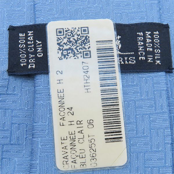 エルメス HERMES ネクタイ ファソネ H 7cm シルク ブルーシエル 水色 H織り ジャガード 【箱】 【中古】