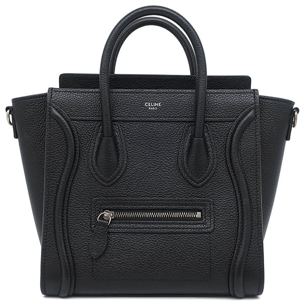 セリーヌ CELINE 2WAYバッグ ラゲージ ナノ ショッパー カーフ ドラムドカーフレザー ブラック シルバー金具 黒 ハンドバッグ ショルダー 189243DRU.38NO 【保存袋】 【中古】