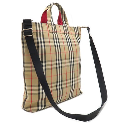 バーバリー BURBERRY 2WAYバッグ ヴィンテージチェック トート コットン アーカイブベージュ シルバー金具 黒 赤 ロゴ ショルダー 8017740 【中古】