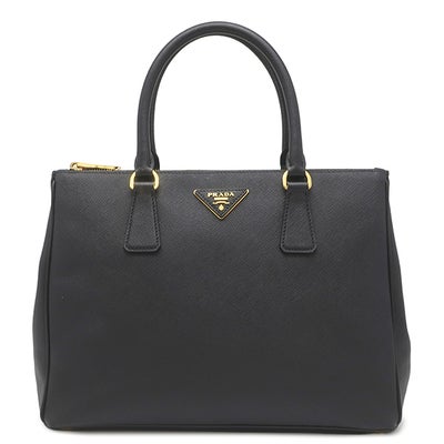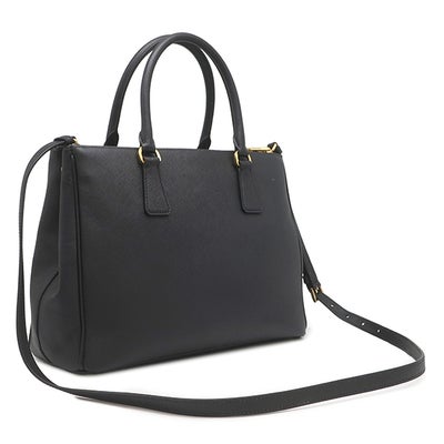 プラダ PRADA 2WAYバッグ ガレリア サフィアーノ ラージバッグ レザー ブラック シルバー金具 黒 ショルダー ハンドバッグ イニシャル刻印あり 1BA274 【中古】