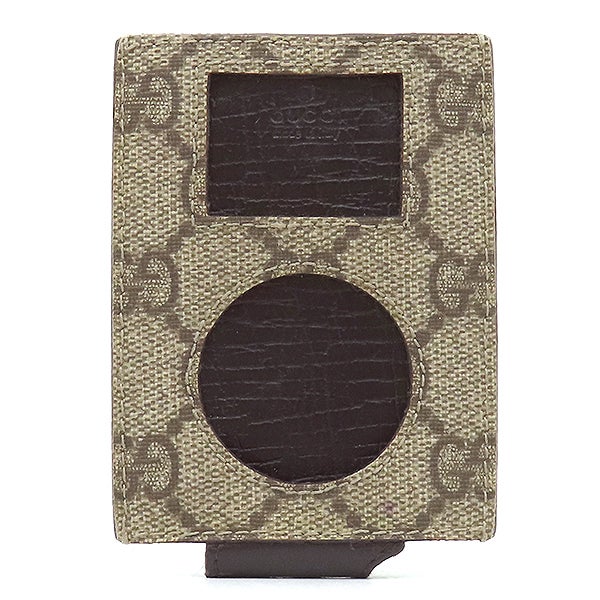 グッチ GUCCI 小物 GG ipod ケース GGスプリームキャンバス ベージュ×エボニー シェリーライン パスケース ネックストラップ 【中古】
