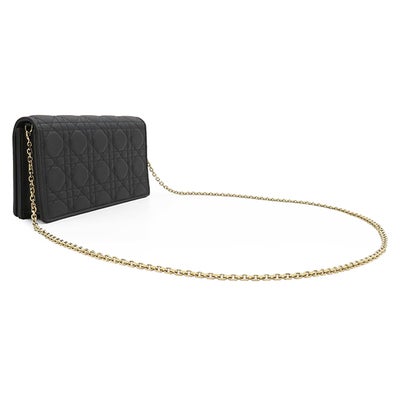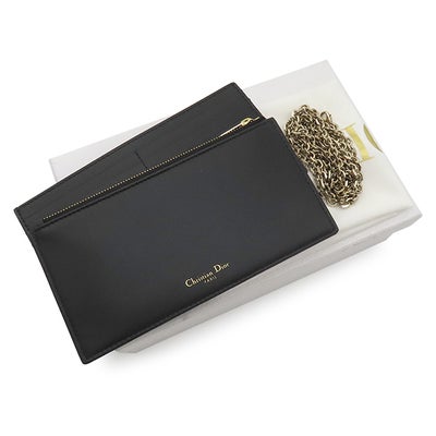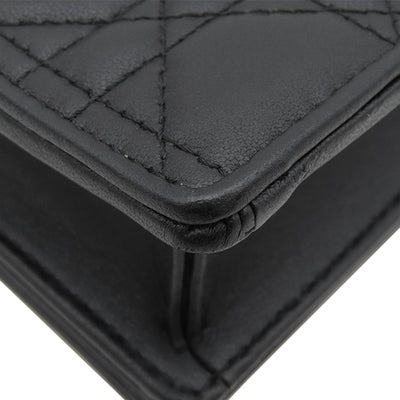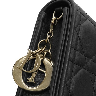 クリスチャン・ディオール Christian Dior 2WAYバッグ Lady Dior ポーチ ラムスキン ブラック ゴールド金具 カナージュ ショルダー クラッチ チェーンウォレット 【箱】 【中古】