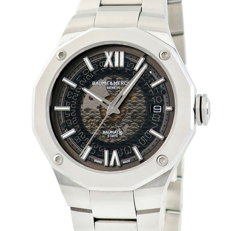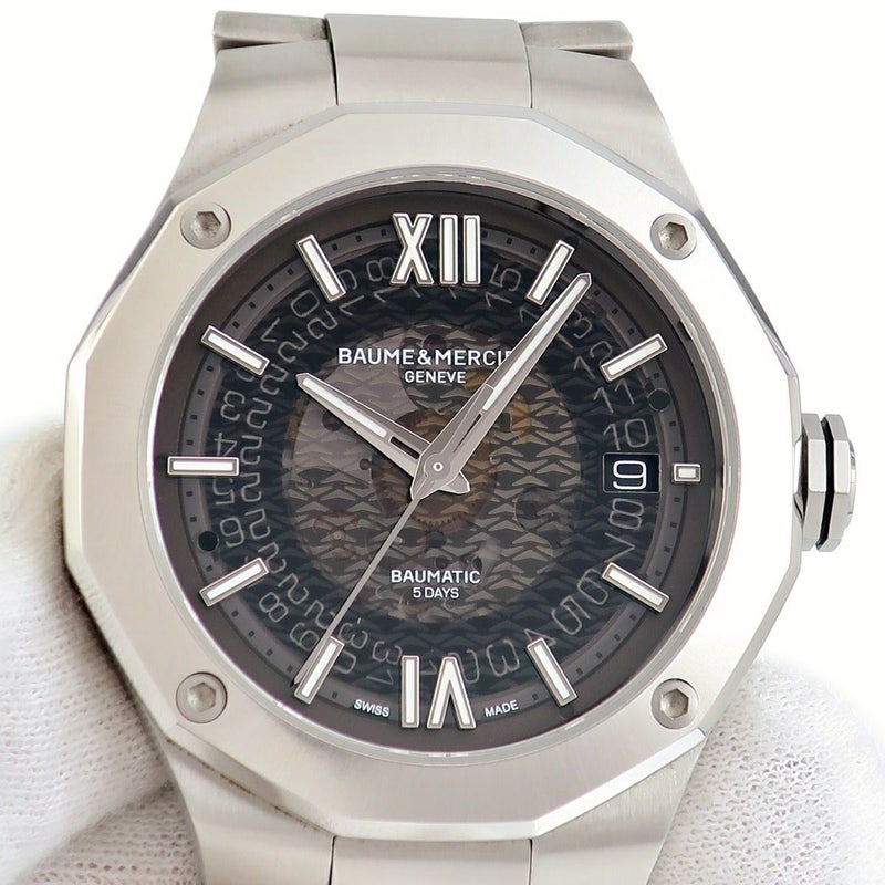 ボーム&メルシエ BAUME&MERCIER リビエラ ボーマティック M0A10702 12角形 スモーキーグレー デイト メンズ 腕時計自動巻き グレー 【中古】