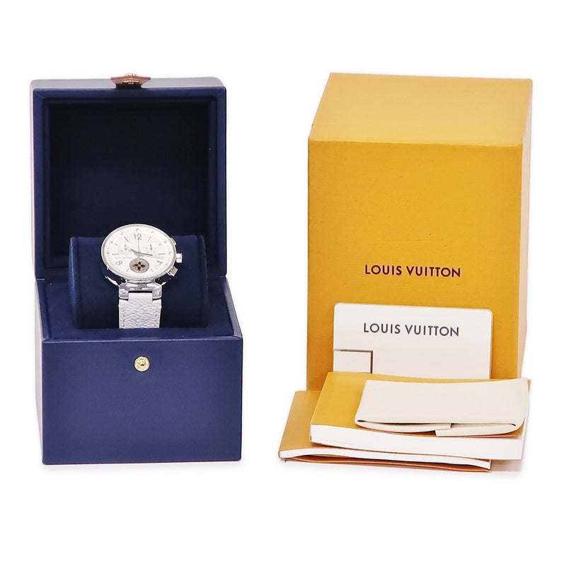 ルイヴィトン LOUIS VUITTON タンブール ムーンスター GM クロノグラフ Q8D10Z デイト スモールセコンド メンズ 腕時計クオーツ シルバー 【中古】