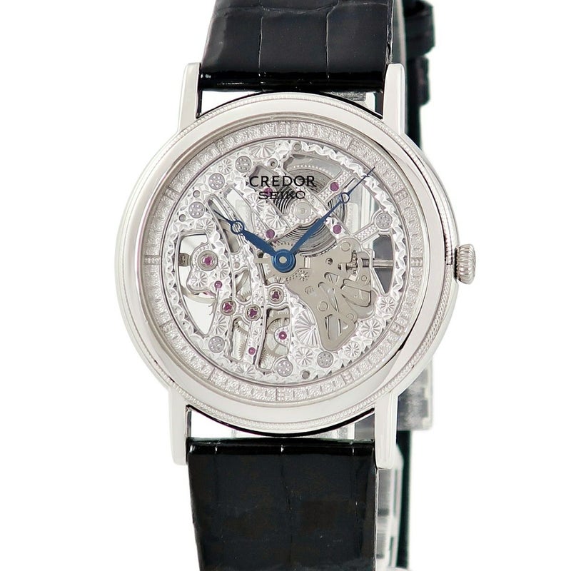 クレドール Credor シグノ メカニカル スケルトン GBBD987 6899-0010 Pt950無垢 彫金 シルバー 薄型 メンズ 腕時計手巻き シルバー 【中古】