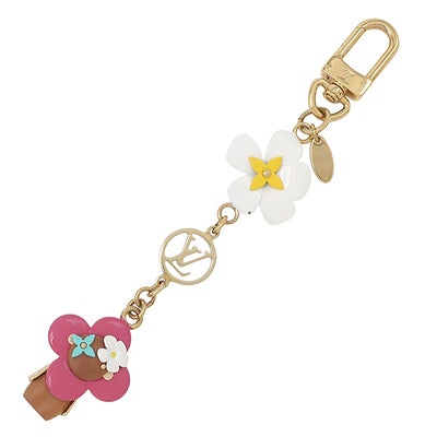 ルイヴィトン LOUIS VUITTON キーホルダー ヴィヴィエンヌ ハワイ チェーン メタル ウッド ピンク×ブラウン×ホワイト ゴールド金具 フラワー バッグチャーム M01356 DI1213 【中古】