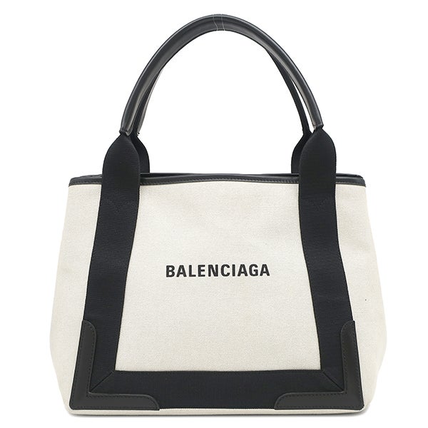 バレンシアガ BALENCIAGA トートバッグ Navy カバ S キャンバス レザー ナチュラル×ブラック シルバー金具 ネイビーカバス 花柄 339933 9266 0 002123 【中古】