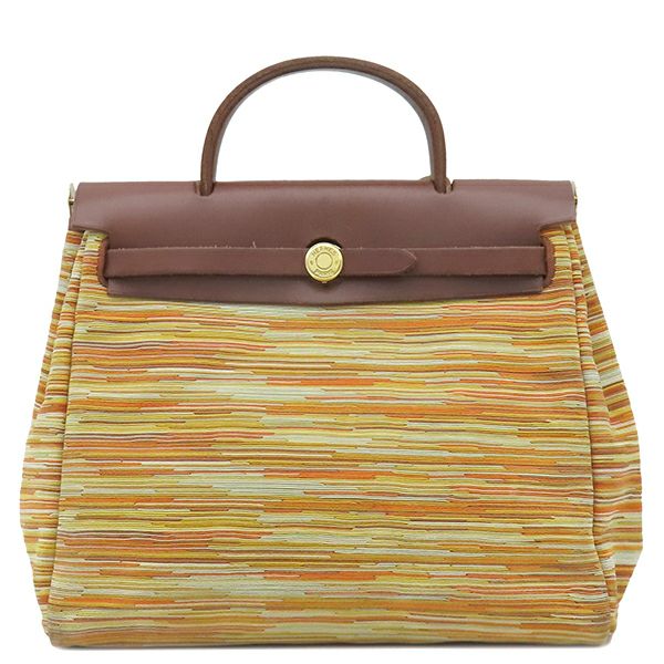 エルメス HERMES 2WAYバッグ エールバッグ PM ヴィブラート トワルオフィシエ ヴァッシュハンター オレンジ系 ゴールド金具 オレンジ 茶 ショルダー ハンドバッグ □F刻印 【保存袋】 【中古】