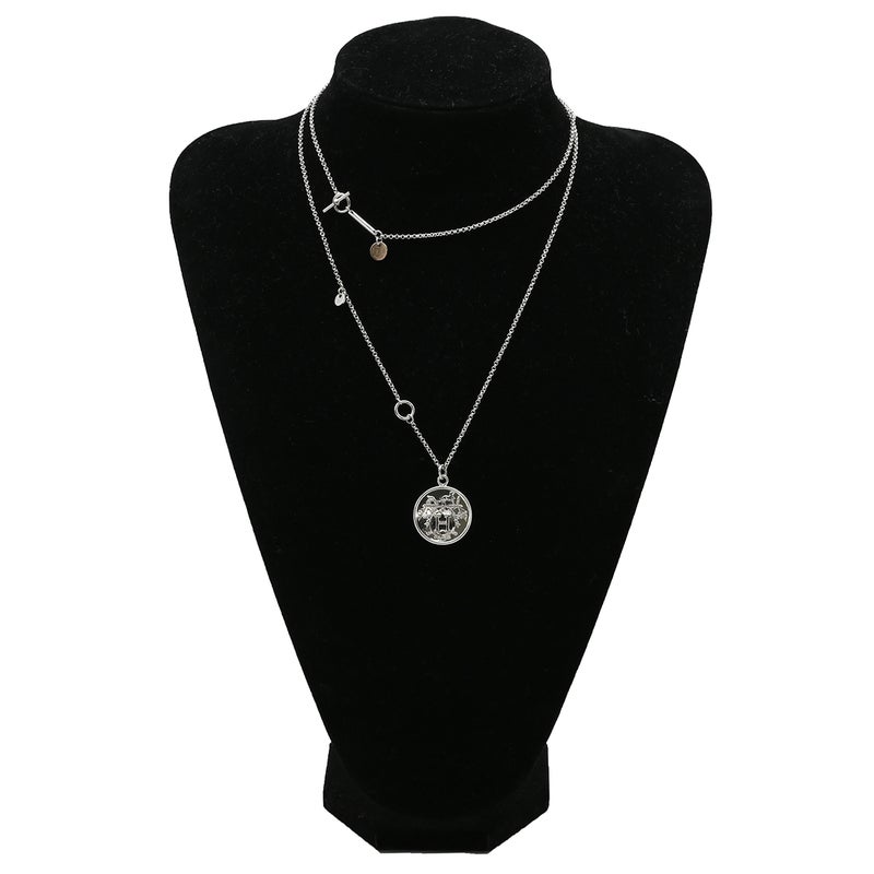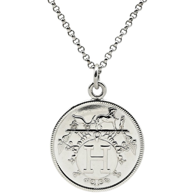 エルメス HERMES ネックレス エクスリブリス ペンダント MM シルバー×ピンクゴールド 3WAY コインモチーフ SV925 AG925 18K PG 【ケース】 【中古】