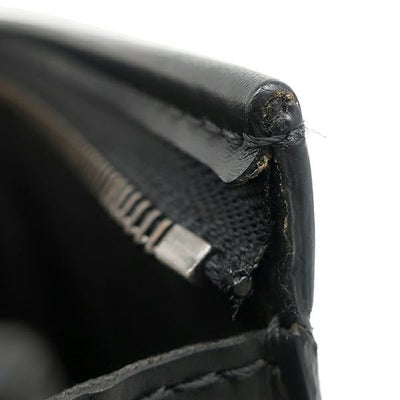 【外側】若干の型崩れ、表面に擦れやテカリ、四つ角に擦れや剥げ、コバに剥げやヒビ、金具に擦れや小傷【内側】生地に僅かな薄汚れ、カードポケットに浮き、オープンポケット内に埃の付着【におい】保管臭