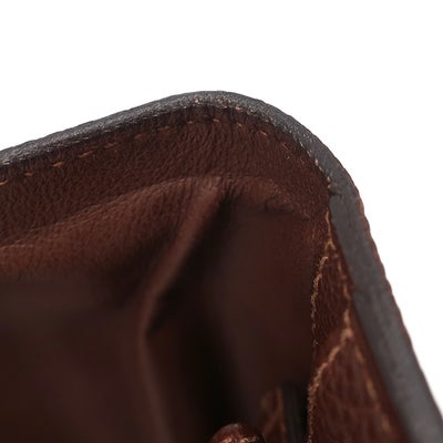 【外側】型崩れ、コインケース含む表面に擦れやテカリ、角周りやコバに擦れやヒビ、金具に擦れ【内側】擦れや薄汚れ、押し跡、フチに僅かな擦れ、フラップ裏にシワ【におい】僅かな保管臭【刻印の場所】オープンポケット内部