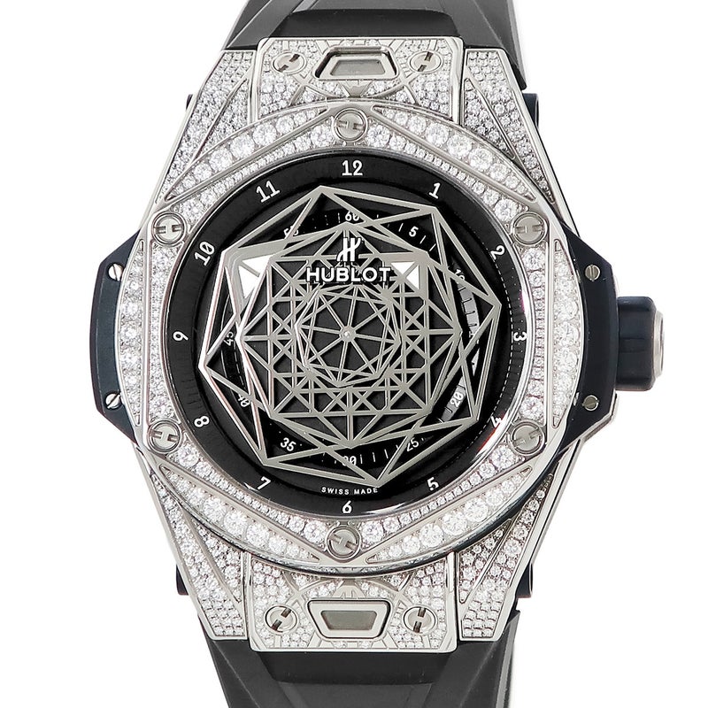 ウブロ HUBLOT ビッグバン ウニコ サンブルー チタニウム パヴェ 415.NX.1112.VR.1704.MXM17 純正ダイヤ 黒 メンズ 腕時計自動巻き ブラック 【中古】