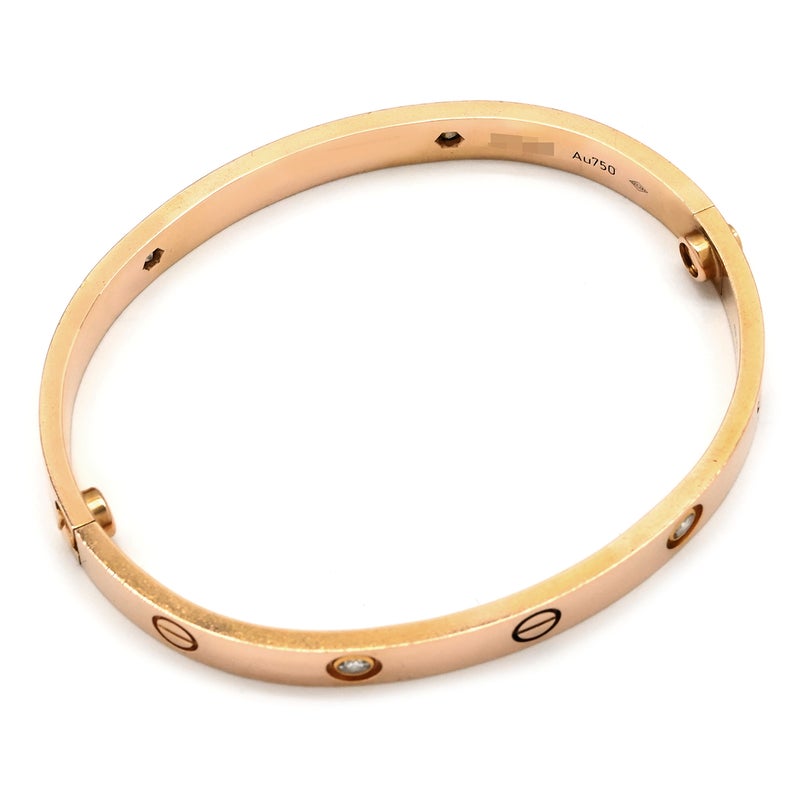 カルティエ Cartier ブレスレット LOVE ラブブレス 旧型 ハーフダイヤ ピンクゴールド #17 Au750 18K 18金 4P 4石 4粒 B6036016 【箱】 【中古】