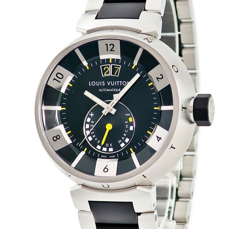 【SALE】 ルイヴィトン LOUIS VUITTON タンブール インブラック Q109G0 パワーリザーブ ビッグデイト 黒 メンズ 腕時計自動巻き ブラック 【中古】