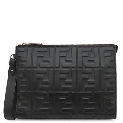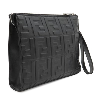 フェンディ FENDI クラッチバッグ ズッカ エンボス レザー ブラック シルバー金具 黒 型押し ポーチ セカンドバッグ 7VA491 【中古】