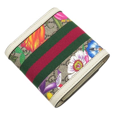 グッチ GUCCI 二つ折り財布 オフィディア GG フローラ ウォレット GGスプリームキャンバス アイボリー×マルチカラー ゴールド金具 花柄 598662 【保存袋】 【中古】