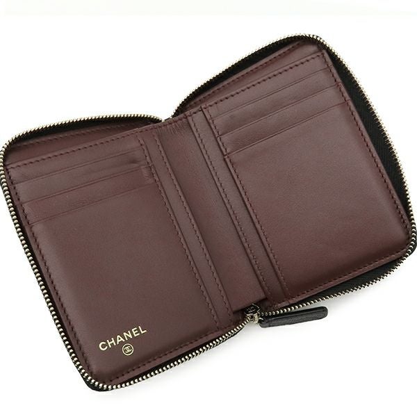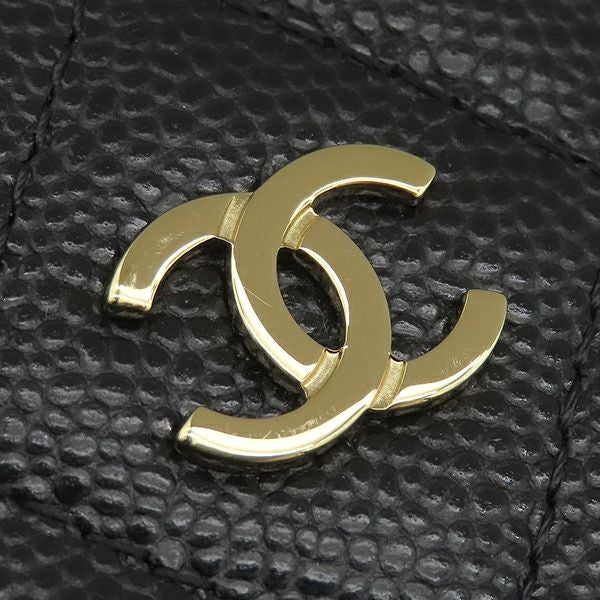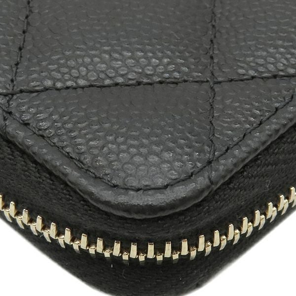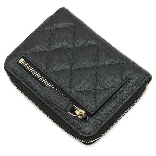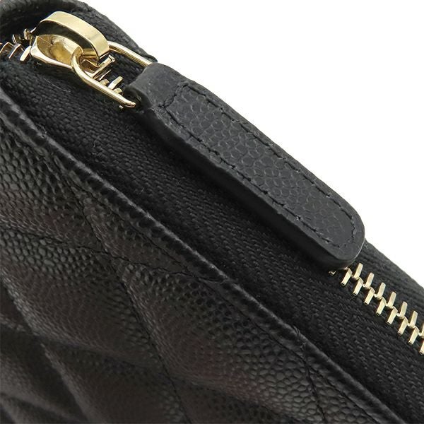 シャネル CHANEL 二つ折り財布 ラウンドジップ ミニ財布 カーフ キャビアスキン ブラック ゴールド金具 黒 ココマーク AP4652 ランダムシリアル 【箱】 【中古】