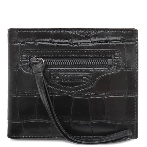バレンシアガ BALENCIAGA 二つ折り財布 ネオ クラシック コンパクトウォレット レザー ブラック ブラック金具 クロコ型押し 黒 【箱】 【中古】
