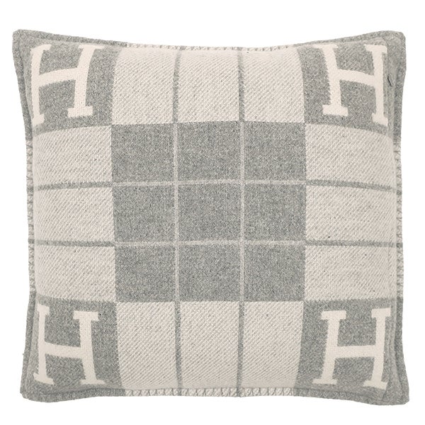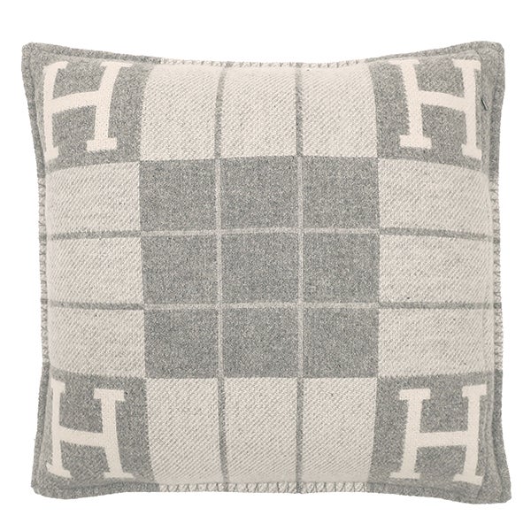 エルメス HERMES アヴァロン3 クッション PM ウール カシミヤ エクリュXグリクレール ライトグレー カバー取り外し可 【中古】
