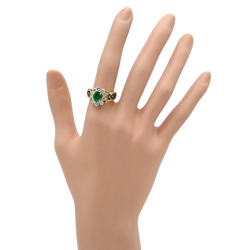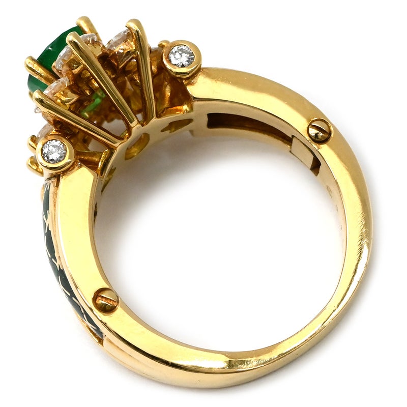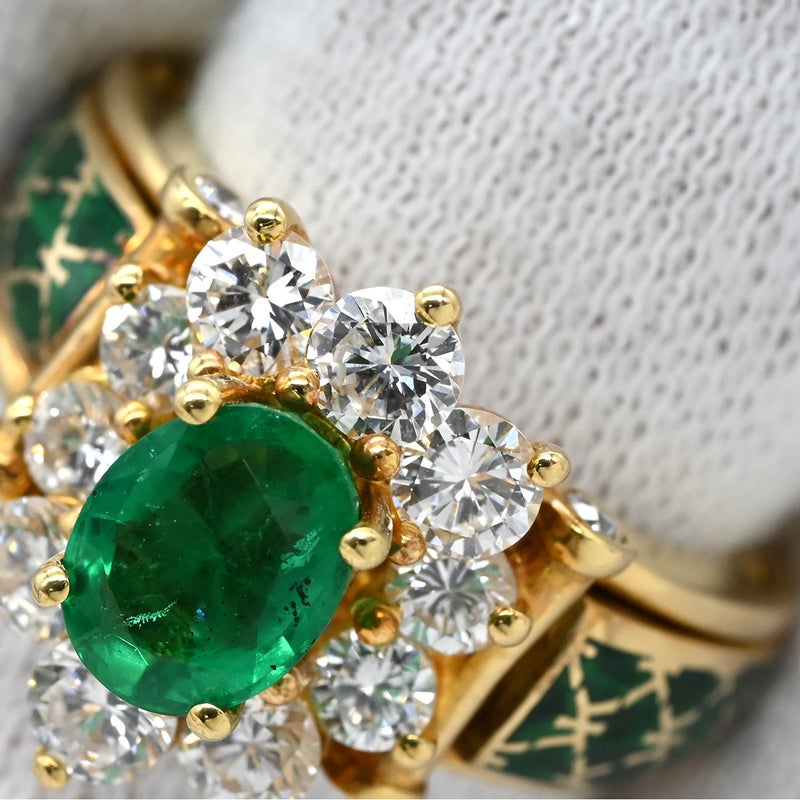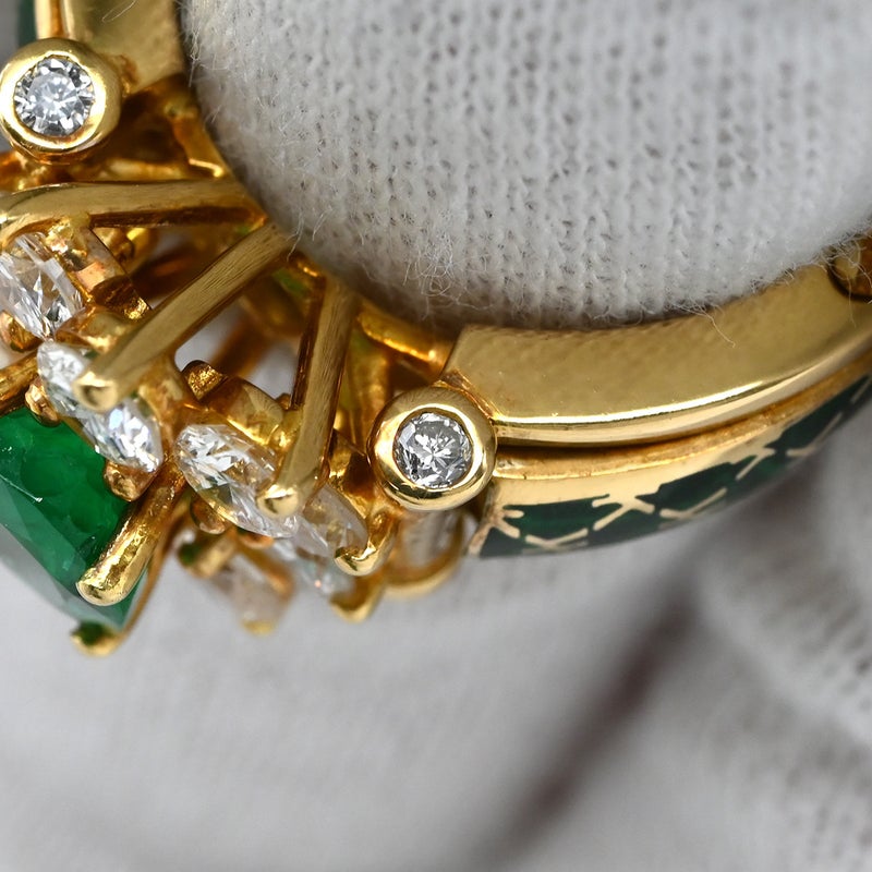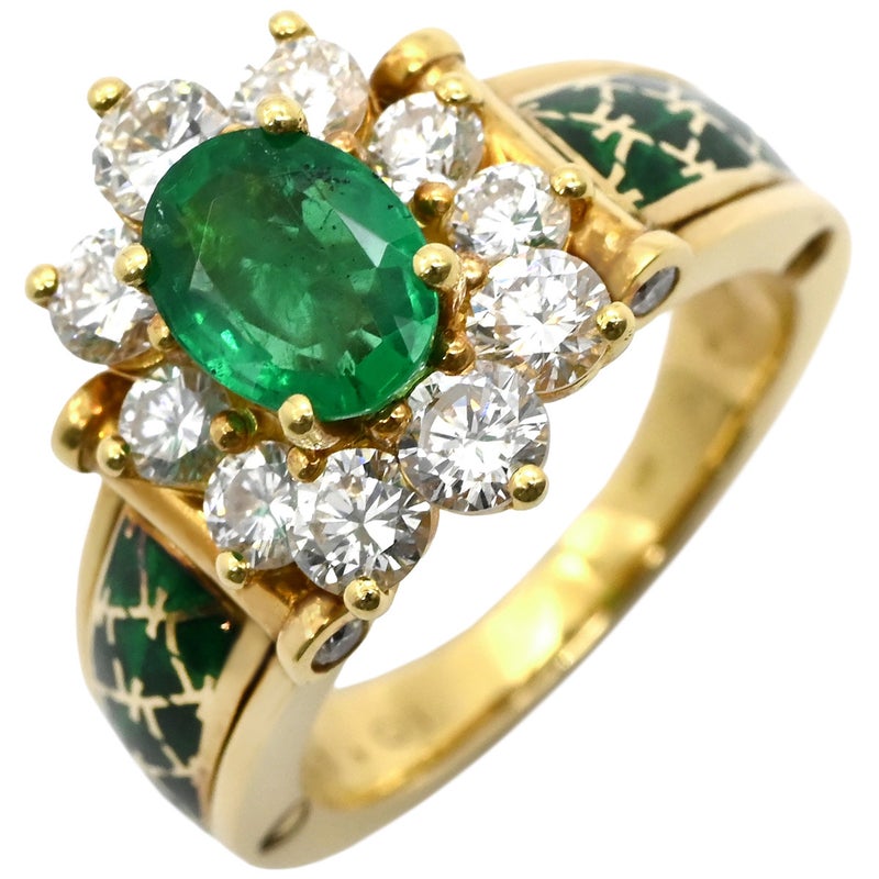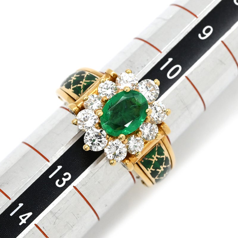 コルロフ Korloff リング 指輪 エメラルド ダイヤ イエローゴールド×緑 Korloff Au750 18K 18金 デイジー リング エマイユ 七宝 12号 4232ELVK 【箱】 【中古】