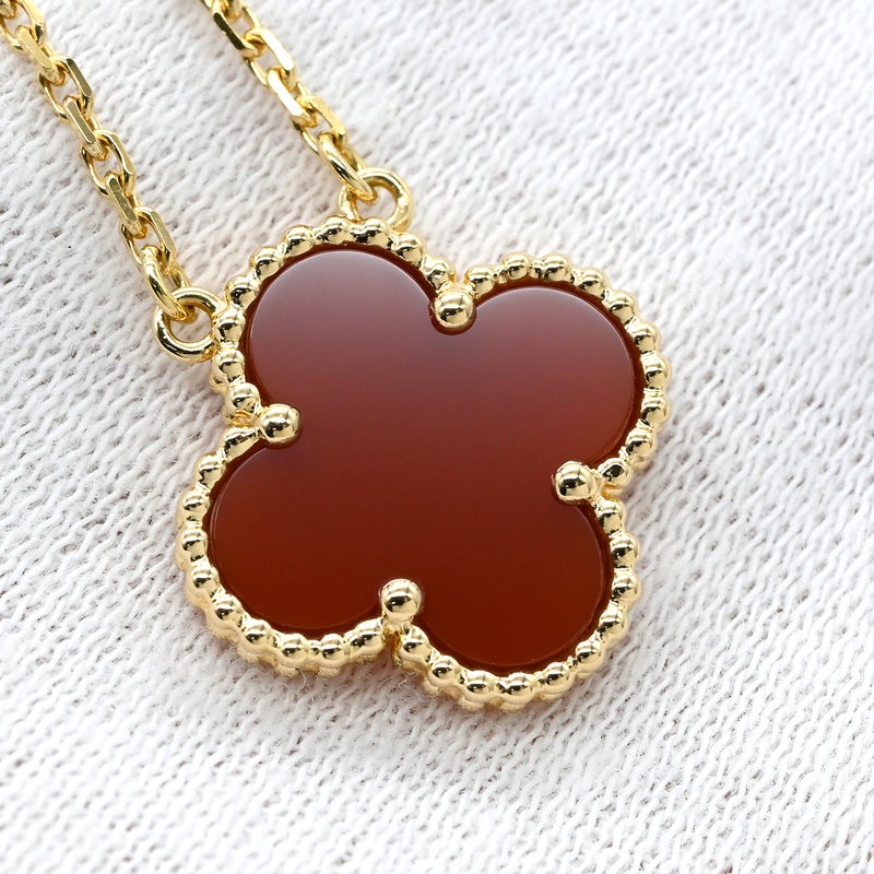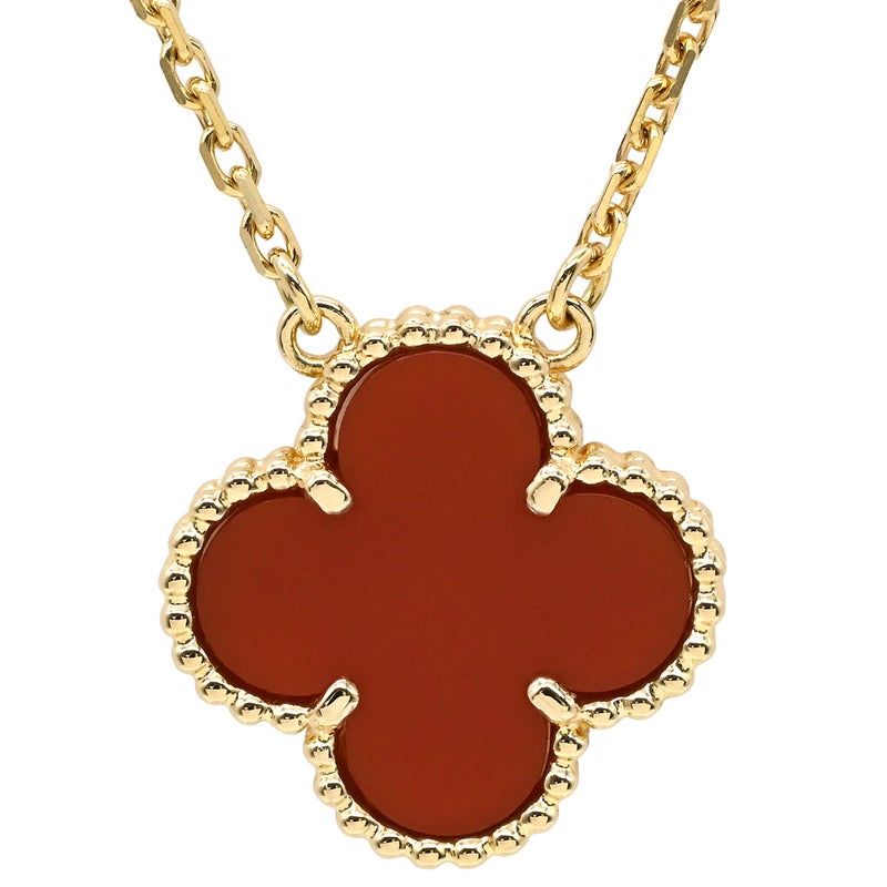 ヴァンクリーフアーペル Van Cleef & Arpels ネックレス ヴィンテージ アルハンブラ ペンダント レッド×イエローゴールド Au750 18K 赤 カーネリアン VCARD38500 【修理証明書】 【中古】