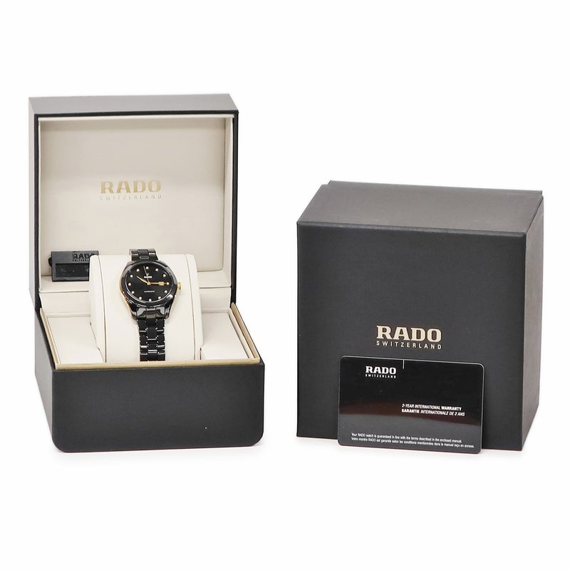 ラドー RADO ハイパークローム R32255712 未使用 純正ダイヤ デイト 限定 レディース 腕時計自動巻き ブラック 【中古】