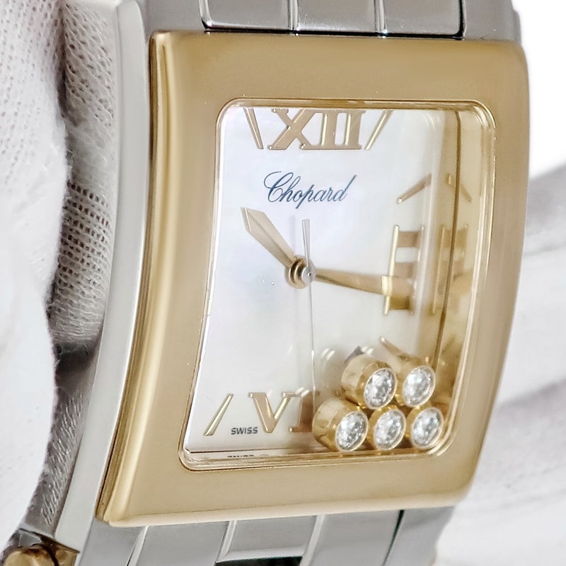 ショパール CHOPARD ハッピースポーツ スクエア 28/8471 純正ダイヤ 5P K18YG×SS コンビ シェル メンズ 腕時計クオーツ ホワイト 【中古】