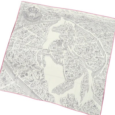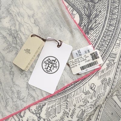 エルメス HERMES ストール カレ140 カレジェアン カシミヤ シルク ホワイト×グリス×ローズ 【 ヌーベル シテ カヴァリエール 】 【箱】 【中古】