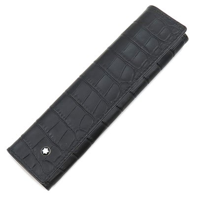 モンブラン Montblanc ペンケース 型押しクロコ ペンポーチ 1本用 レザー ブラック シルバー金具 黒 【中古】
