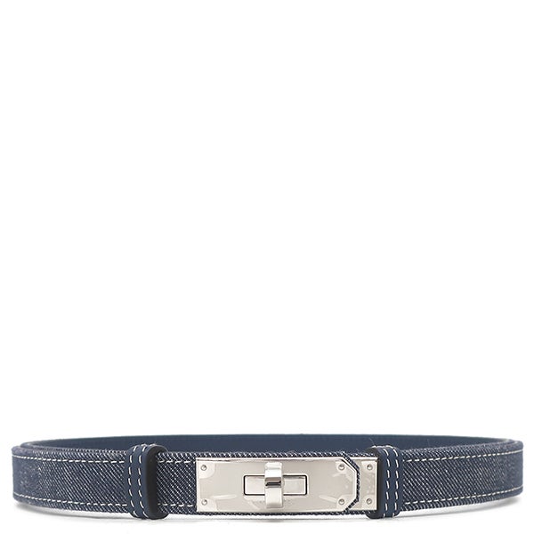 エルメス HERMES ベルト ケリー ジーン 18 デニム ヴォーエプソン GP ブルーインディゴ×ホワイト×ブルーネイビー シルバー金具 デニム 紺 ターンロック金具 スライド調節 W刻印(2024年製) 【箱】 【中古】