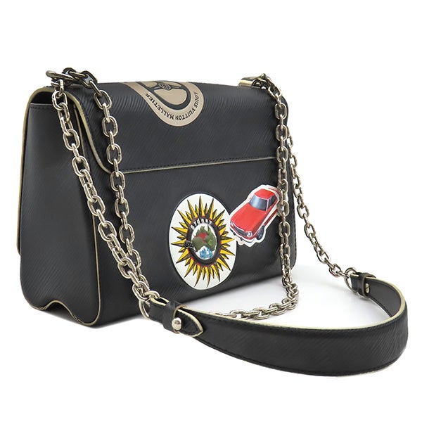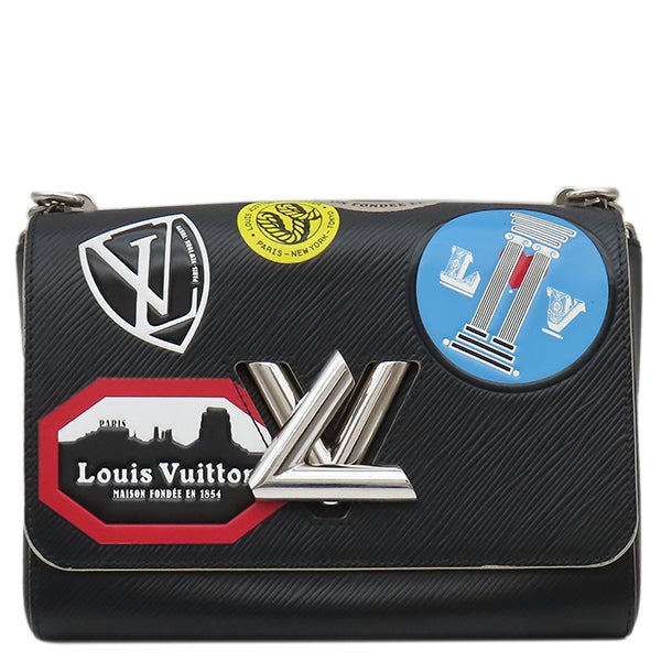ルイヴィトン LOUIS VUITTON ショルダーバッグ ワールドツアー ツイストMM エピレザー ノワール シルバー金具 黒 ワッペン風 ステッカーモチーフ M52105 FL3146 【保存袋】 【中古】