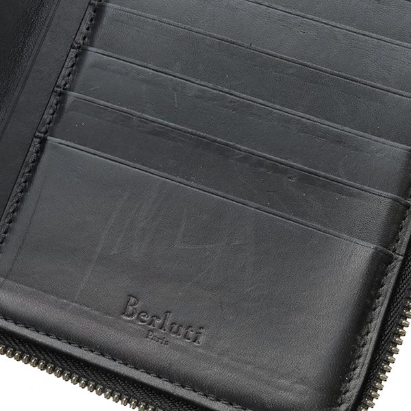 ベルルッティ BERLUTI 長財布 タリ マキシウォレット レザー ブラック シルバー金具 黒 スクリット カリグラフィ ラウンドファスナー 【中古】