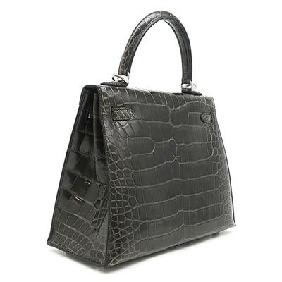 エルメス HERMES 2WAYバッグ ケリー25 外縫い アリゲーター グラファイト シルバー金具 Y刻印 【箱】 【中古】
