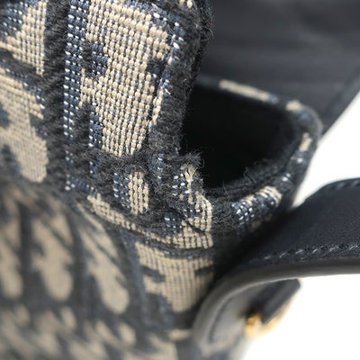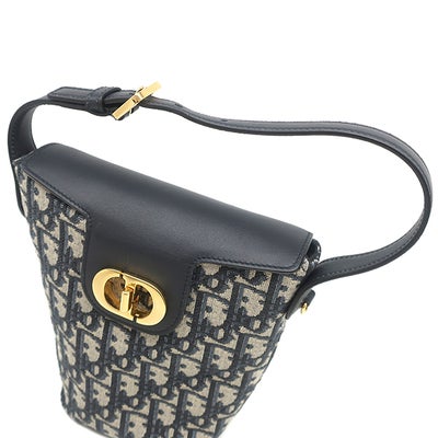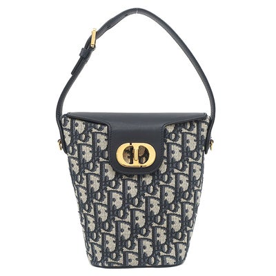 クリスチャン・ディオール Christian Dior 2WAYバッグ アンバー ミニ バケットバッグ コットン レザー ネイビー系 ゴールド金具 ショルダー オブリーク 【保存袋】 【中古】