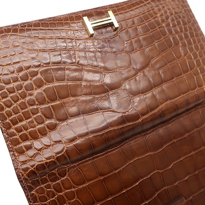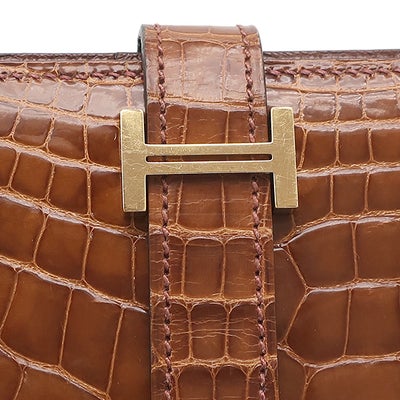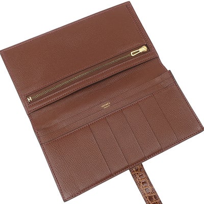 エルメス HERMES 長財布 ベアンスフレ アリゲーター ミール ゴールド金具 クロコ シャイン 二つ折り財布 X刻印 【箱】 【中古】