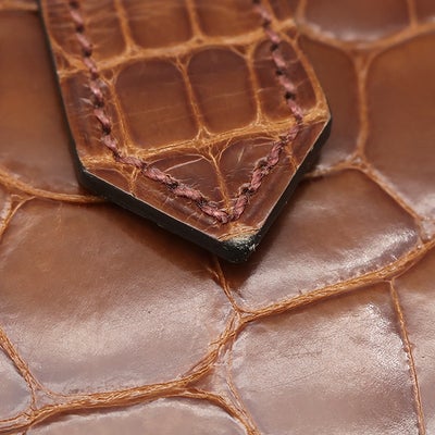 【外側】四つ角に僅かなスレ、表面に僅かな浮き、シワとスレ、金具に小傷【内側】僅かな押し跡【におい】僅かな保管臭【刻印場所】オープンポケット内側 ※箱にシミ有