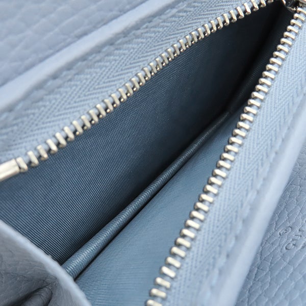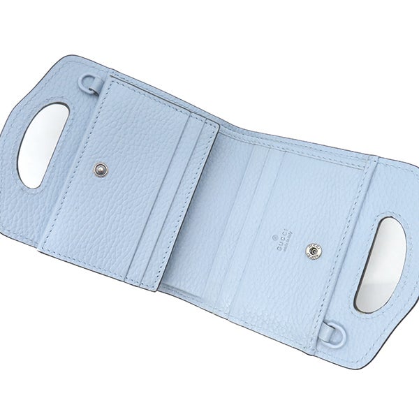 グッチ GUCCI チェーンウォレット ダブルG コンパクト ウォレット レザー ブルー 青 ミニ 二つ折り 財布 701074 【中古】