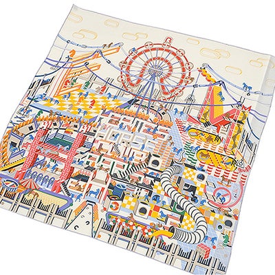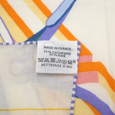 エルメス HERMES ストール カレ140 カレジェアン カシミヤ シルク ホワイト×ルージュ×マルチカラー 【Horse Club/ホースクラブ】 ソルド品 【中古】
