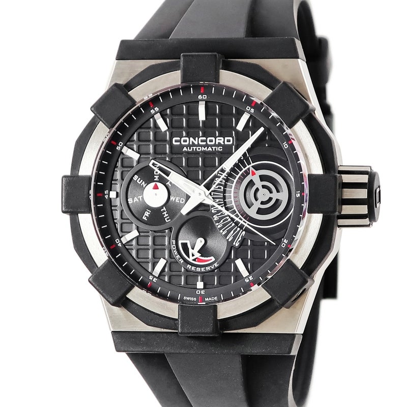 コンコルド CONCORD C1 レトログラード デイデイト 0320054 01.5.40.1020 新品同様 黒 パワーリザーブ表示 メンズ 腕時計自動巻き ブラック 【中古】