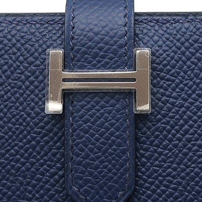 エルメス HERMES 二つ折り財布 ベアンミニ ヴォーエプソン ブルーネイビー シルバー金具 紺 コンパクト K刻印(2025年製) 【箱】 【中古】