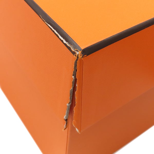 【外側】表面に素材特有の微かな擦れ【内側】特になし【におい】若干の保管臭【刻印の場所】内側側面レザー部分 ※箱に破れがございます。