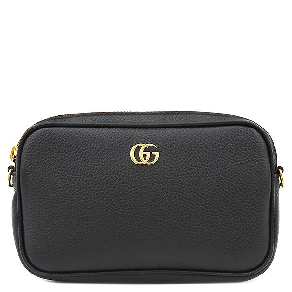 グッチ GUCCI ショルダーバッグ GGマーモント ミニ レザー ブラック ゴールド金具 チェーンショルダー 黒 772759 【箱】 【中古】