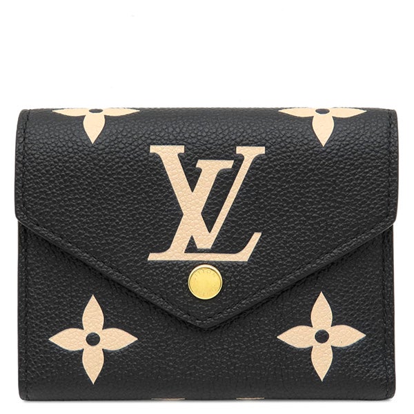 ルイヴィトン LOUIS VUITTON 三つ折り財布 ポルトフォイユ ヴィクトリーヌ モノグラムアンプラント ブラック ベージュ ゴールド金具 コンパクト財布 M80968 RFID 【箱】 【中古】