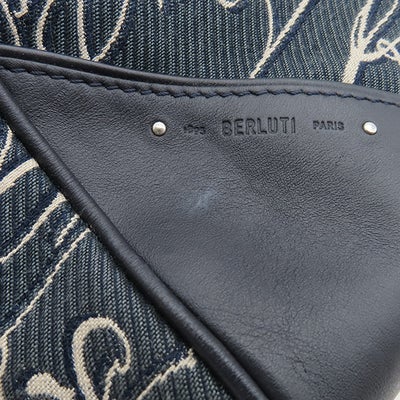 ベルルッティ BERLUTI リュック・デイパック スクリットアラベスク バックパック キャンバス レザー ネイビー×アイボリー シルバー金具 バックパック 【中古】