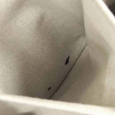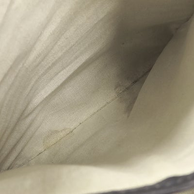 【外側】表面に擦れやボンド染み、レザーに擦れや擦れ傷、僅かな薄汚れ、四つ角やフチに擦れや剥げ、コバにヒビ、ショルダーに毛羽立ち【内側】外ポケット含む内側生地に擦れや薄汚れ、僅かな青い汚れ、ポケットに黒い汚れやシミ、フラップ裏に擦れ傷【におい】強い保管臭