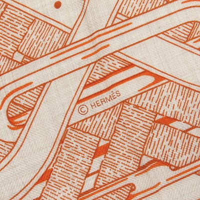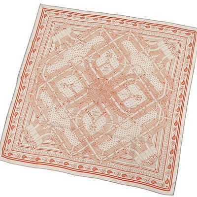 エルメス HERMES ストール カレ140 カレジェアン カシミヤ シルク オレンジ×ナチュラル×ルージュ 新品 未使用 【Mors a Jouets Bandana/馬銜 バンダナ】 【箱】 【中古】