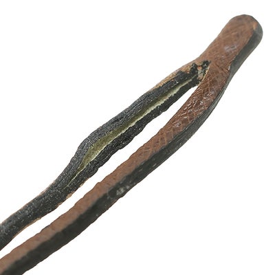【外側】金具に小傷、持ち手に小傷、コバにスレ、クロシェットに剥がれ【内側】擦れ傷や線スレ、押し跡【におい】保管臭【刻印の場所】外側タブ裏側