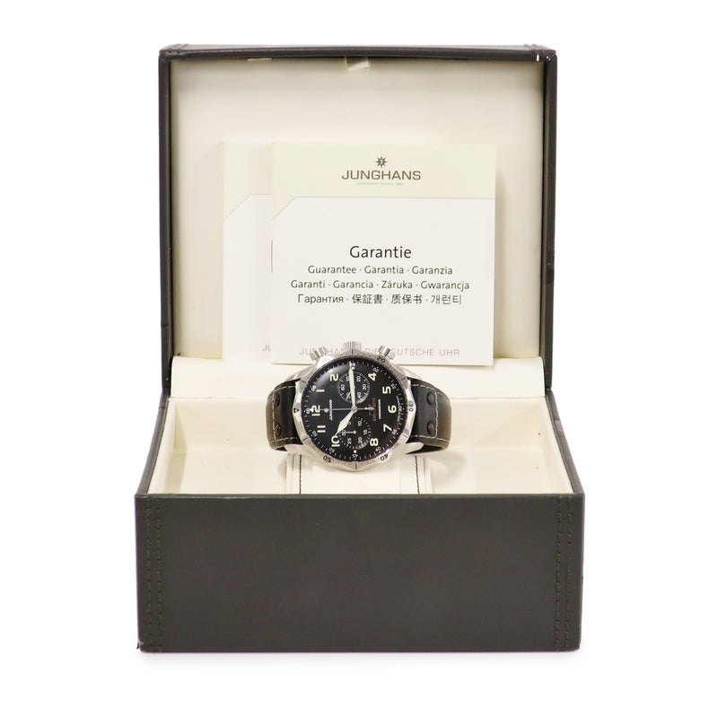 ユンハンス JUNGHANS マイスター パイロット クロノグラフ リミテッド 027/3592.00 黒 復刻モデル 限定 メンズ 腕時計自動巻き ブラック 【中古】