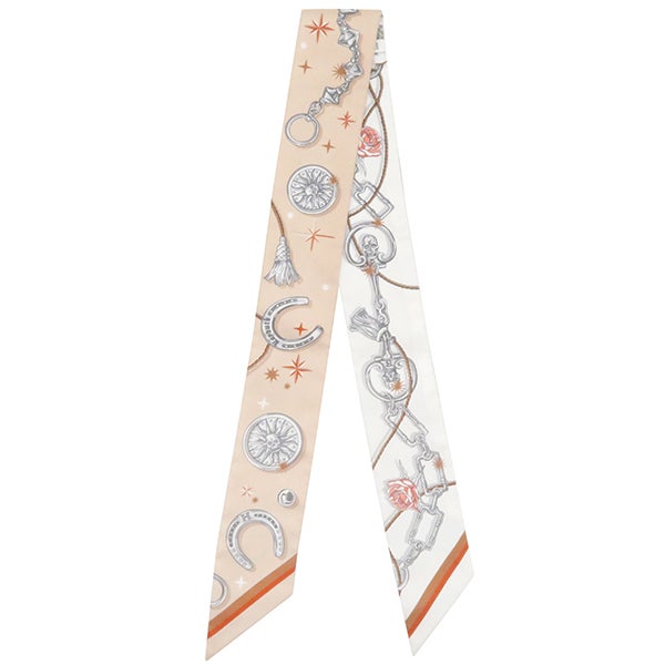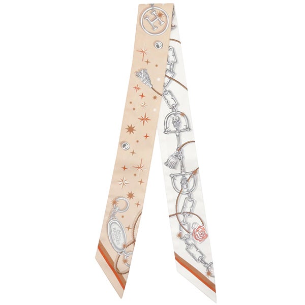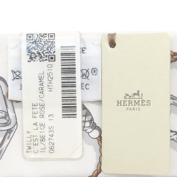 エルメス HERMES スカーフ ツイリー シルク ベージュロゼ×キャラメル×ホワイト 新品 未使用 【C'est la Fete/セ ラ フェット】 H062743S 13 【箱】 【中古】
